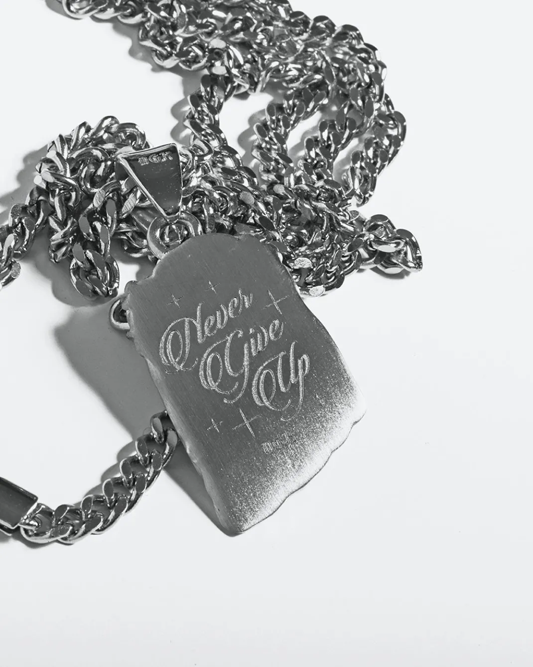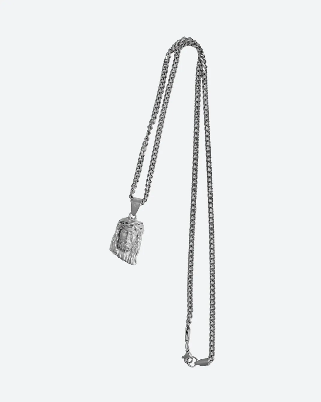 Silver Metal Pendant / Custom Mold Jesus Art 22” 3MM Wide Cuban Link Chain / Custom Closure Clasp Black Felt Bag w/ Gold Foil Art
