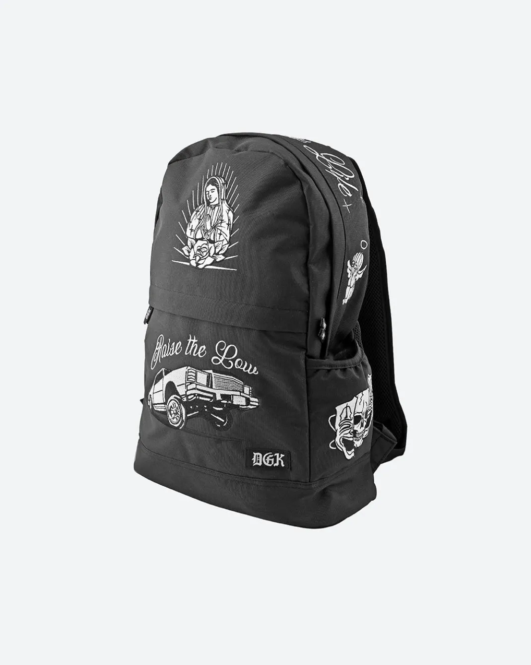 100% HEAVY DUTY 420D NYLON / CLASSIC BAG SHAPE / EMBROIDERED ART / FULL SIZE MULTI COMPARTMENT / DUAL DRINK POCKETS / INTERNAL LAPTOP SLEEVE / PADDED BOTTOM / BACK BODY LOGO EMBROIDERY / WOVEN LABEL / YKK ZIPPERS
